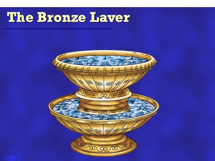 V 8 The Bronze Wash Basin or Laver pictured cleansing and forgiveness of sin. The Laver was made with a bronze stand and with mirrors given by the women who served the Lord (Illus 4-5). It was located between the Altar of Burnt Offering and the Outer Veil. A priest could not serve the Lord and His people without first being cleansed. Today we are called to wash before we can serve the Lord and others, our laver is God’s Word which cleanses us. We constantly need to be reminded of who we are—redeemed sinners who need to be regularly washed, cleansed, and forgiven of our sin.